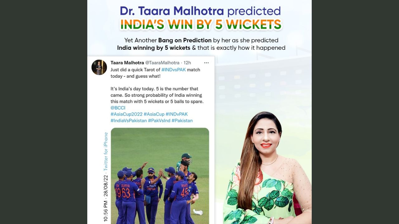 Dr Taara Malhotra’s prediction of India’s victory against Pakistan at Asia Cup 2022 proves real
