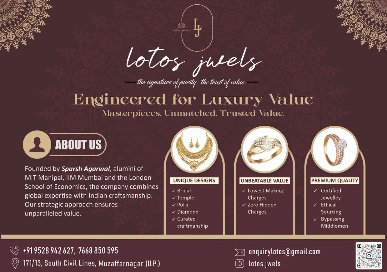 Founded by Sparsh Agarwal, Lotos Jwels combines global academic excellence with timeless craftsmanship to offer world-class designs at unparalleled value. By eliminating unnecessary supply chain layers, the brand has made luxury purchases affordable for every household in the region.